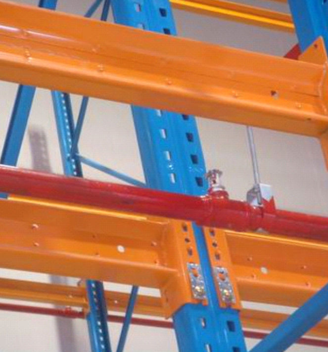 • In Rack Sprinkler installation solution for warehouse high pile storage racking